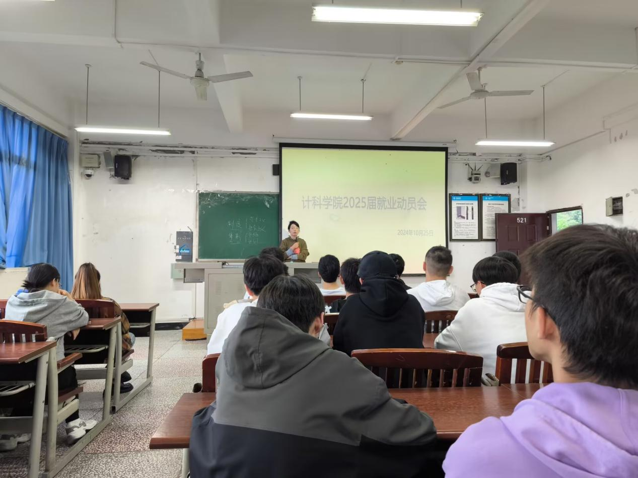 为促进计科学院2025届毕业生充分了解就业形势,引导同学们进行合理就业升学规划,助推高质量就业。10月25日下午,计科学院周政、黄玲淋两位毕业班辅导员在明辨楼1栋521、522教室召开以“就业助航筑梦未来”为主题的就业动员大会。