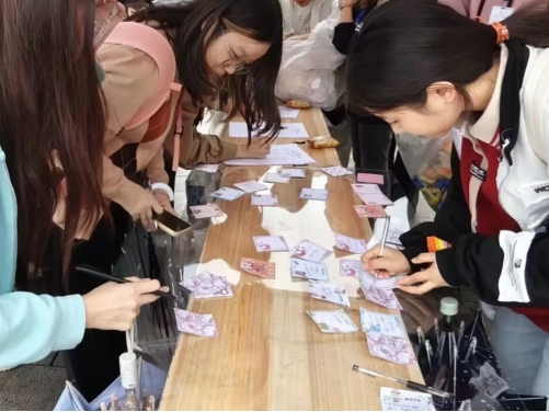 在“情绪分享板”前,同学们纷纷领取便利贴,用画笔描绘出自己内心的情绪世界。每一幅作品都承载着同学们的独特情感与深刻思考,它们被一一贴在分享板上,形成了一幅绚丽多彩的情绪画卷。