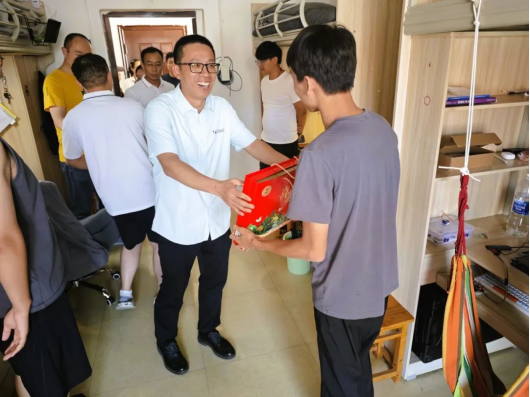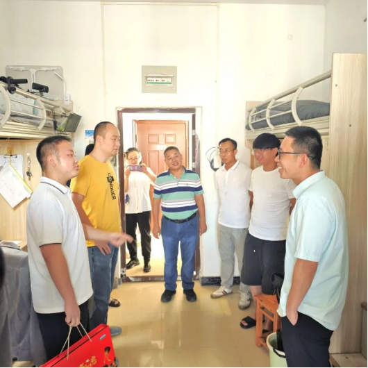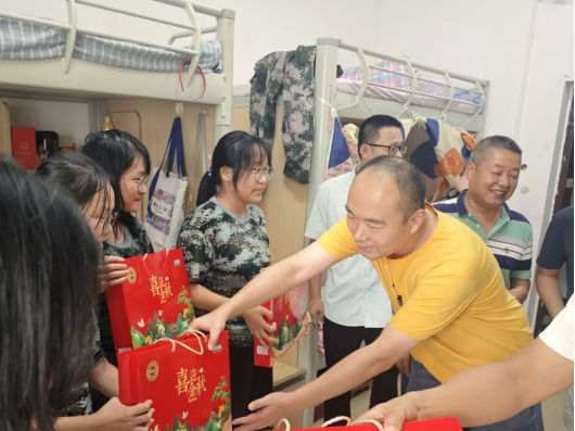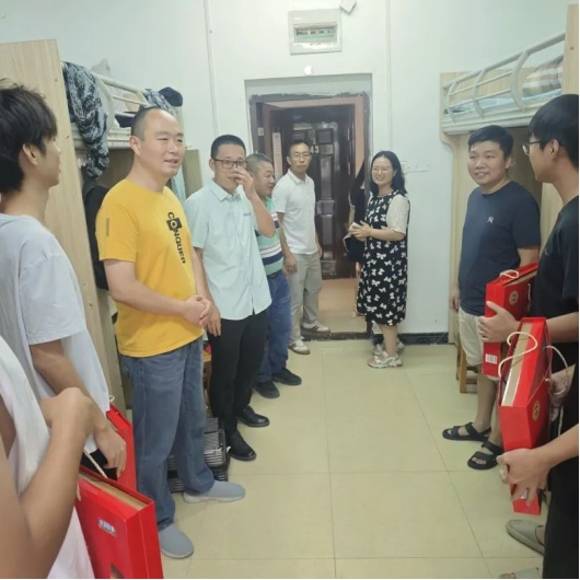 2024年9月14日,计科学院党总支书记赵春哲、院长冯玉明、党总支副书记廖红富、副院长李洪兵、副院长代祥光以及全体辅导员走访了学院部分本科及研究生新生宿舍,为同学们送上节日祝福。