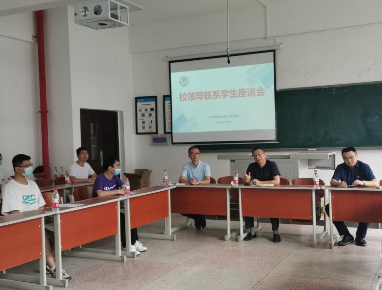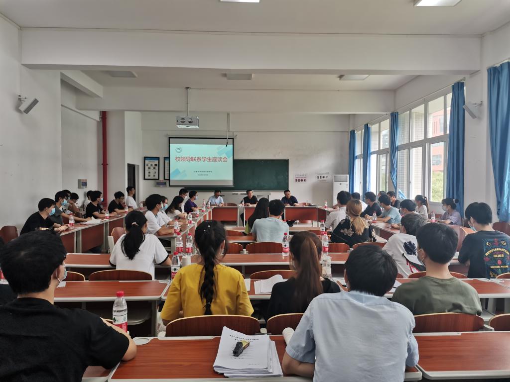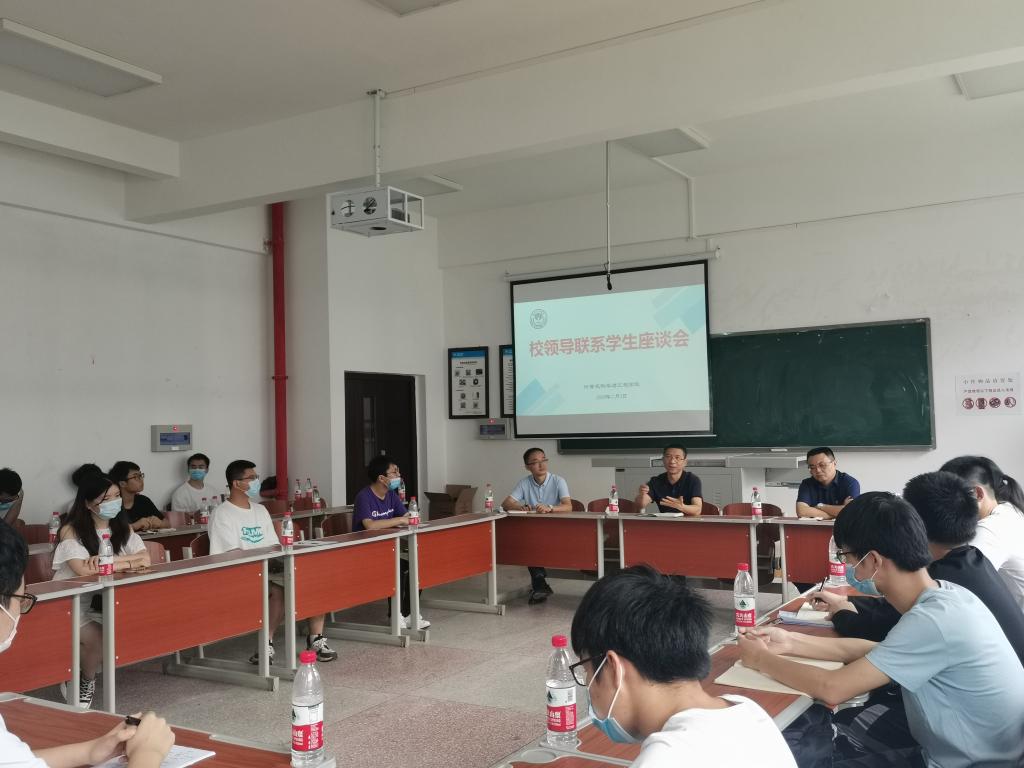 7月3日14时30分,张伟校长在慎思楼4-408与联系的班级、宿舍、社团、学生党支部学生代表座谈交流。计科学院院长熊江,党总支副书记刘文菘陪同参加座谈会。