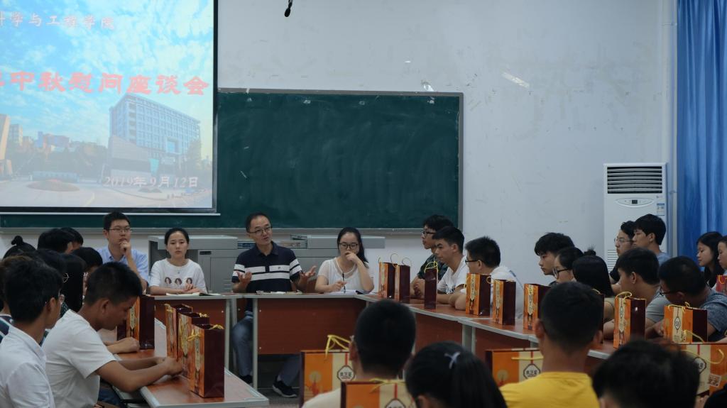 “花好月圆人团圆,千里共婵娟。”9月12日下午3时,计科院2019年中秋学生慰问座谈会在慎思楼4栋405举行。党总支副书记刘文菘及150余名贫困学生代表参会。