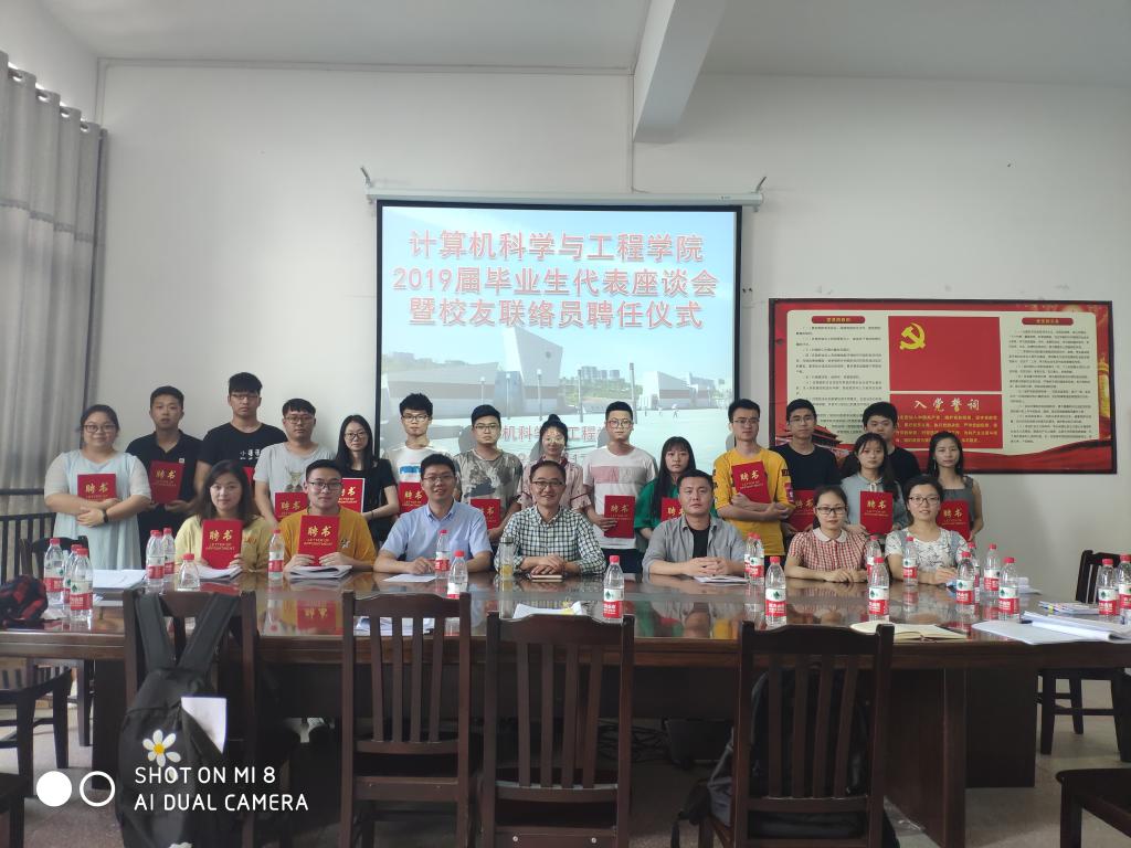 5月17日下午,计科学院2019届毕业生代表座谈会暨校友联络员聘任仪式,在慎思楼3栋403会议室举行。计科学院党总支副书记刘文菘以及全体辅导员老师、2019届毕业生代表参加座谈会,会议由学工办主任袁颖老师主持。