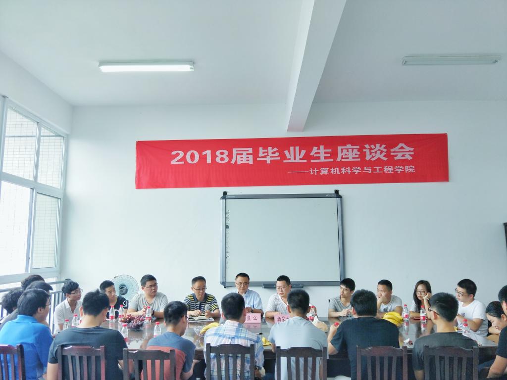 2018年6月20日14:30,计算机科学与工程学院2018届毕业生座谈会于实验楼B2-403举行,20余名毕业生代表参加了本次座谈会。今年会官方网站院长熊江、党总支书记杨家云出席座谈会,会议由党总支副书记刘文菘主持。