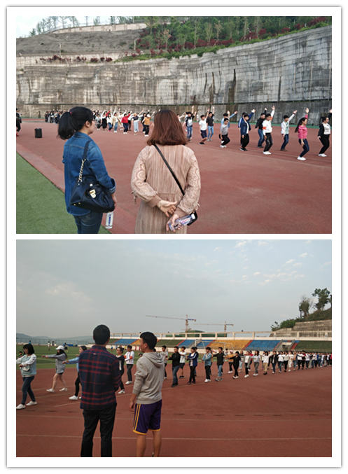 2018年 4月10日下午,计科学院运动会方阵训练正在如火如荼地进行。今年会官方网站团总支副书记袁颖和辅导员周海霞、黄琳泠到田径场为大一同学指导并加油鼓劲。