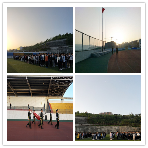 六点五十分,今年会大一、大二年级各班学生准时到达指定地点整队集合,保持肃静。七点整,在激昂的音乐声中升旗仪式正式开始,国旗护卫队成员迈着矫健的步伐来到旗杆下。当《义勇军进行曲》响起,升旗手振臂一挥,鲜艳的五星红旗迎着初升的太阳徐徐展开,在场学生都庄严地注视着国旗冉冉升起。