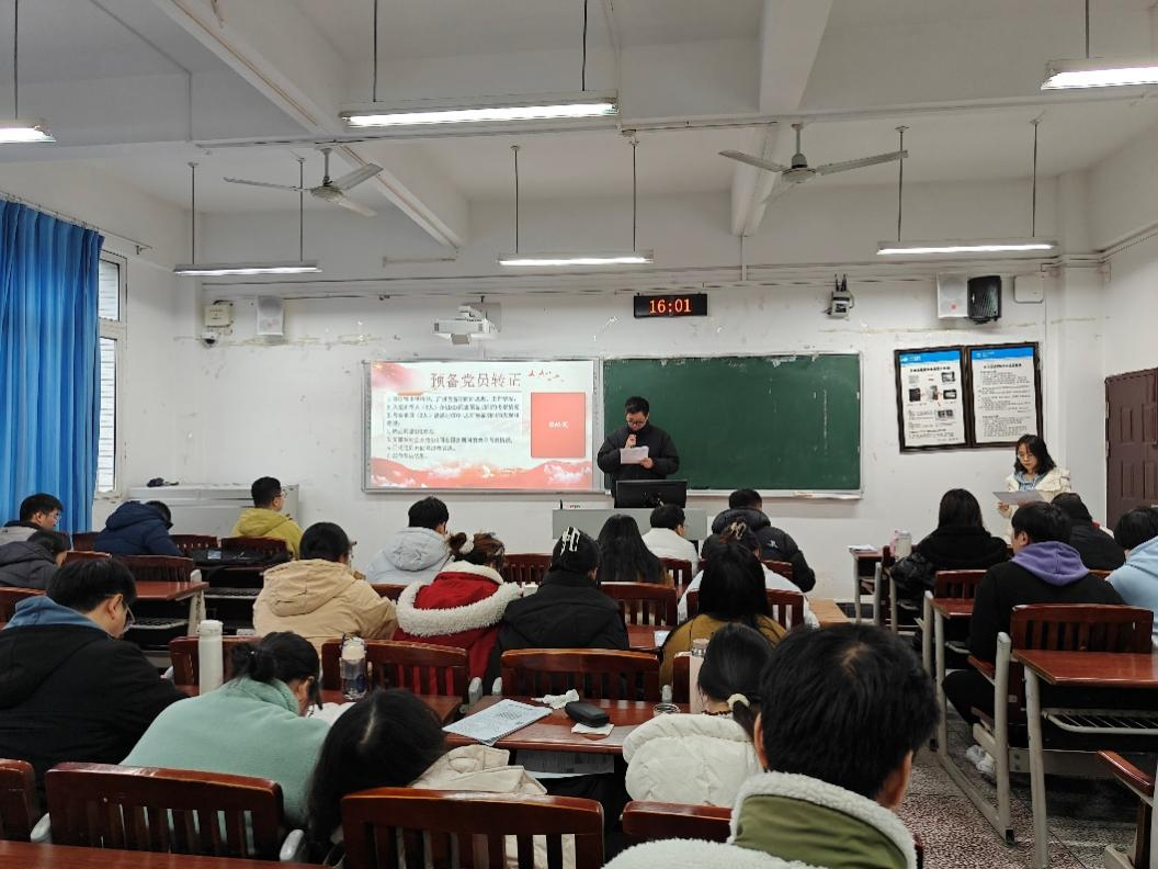 12月10日今年会官方网站学生第四党支部在明辨楼1-304隆重举行了预备党员转正大会,讨论并表决梁峰源同志的转正问题。学生第四党支部书记殷镭主持会议,支部全体党员参加。