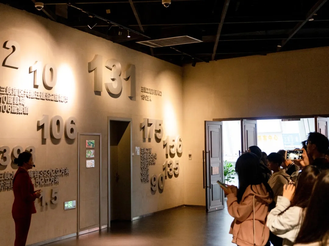 迎着朝阳,同学们按照分组有序进入三峡移民纪念馆。跟随讲解员的脚步,学员们首先来到《伟大壮举·辉煌历程》展厅。