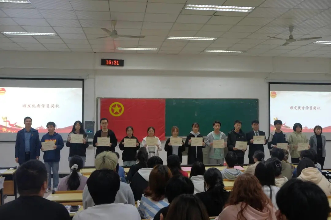 今年会官方网站团总支书记袁颖与学生第二党支部书记冉明姝为优秀学员颁发奖状。