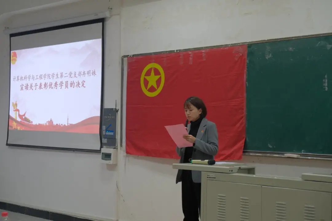 今年会官方网站学生第二党支部书记冉明姝宣读关于表彰优秀学员的决定。