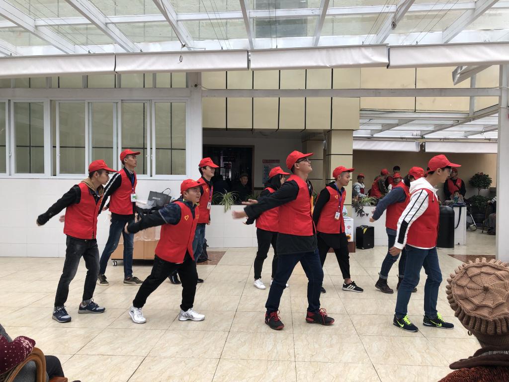出发前,青年志愿者们都充满期待,期待能为老人们带去快乐。来到福利院,恰逢赶上老人们活动时间,志愿者们随即将准备已久的文艺节目一一表演在表演和交谈中,现场气氛变得和谐、温馨,欢声笑语充满了整个福利院。表演结束后,志愿者们在院方工作人员的安排下对福利院场地和设施进行义务清洁、维修等。