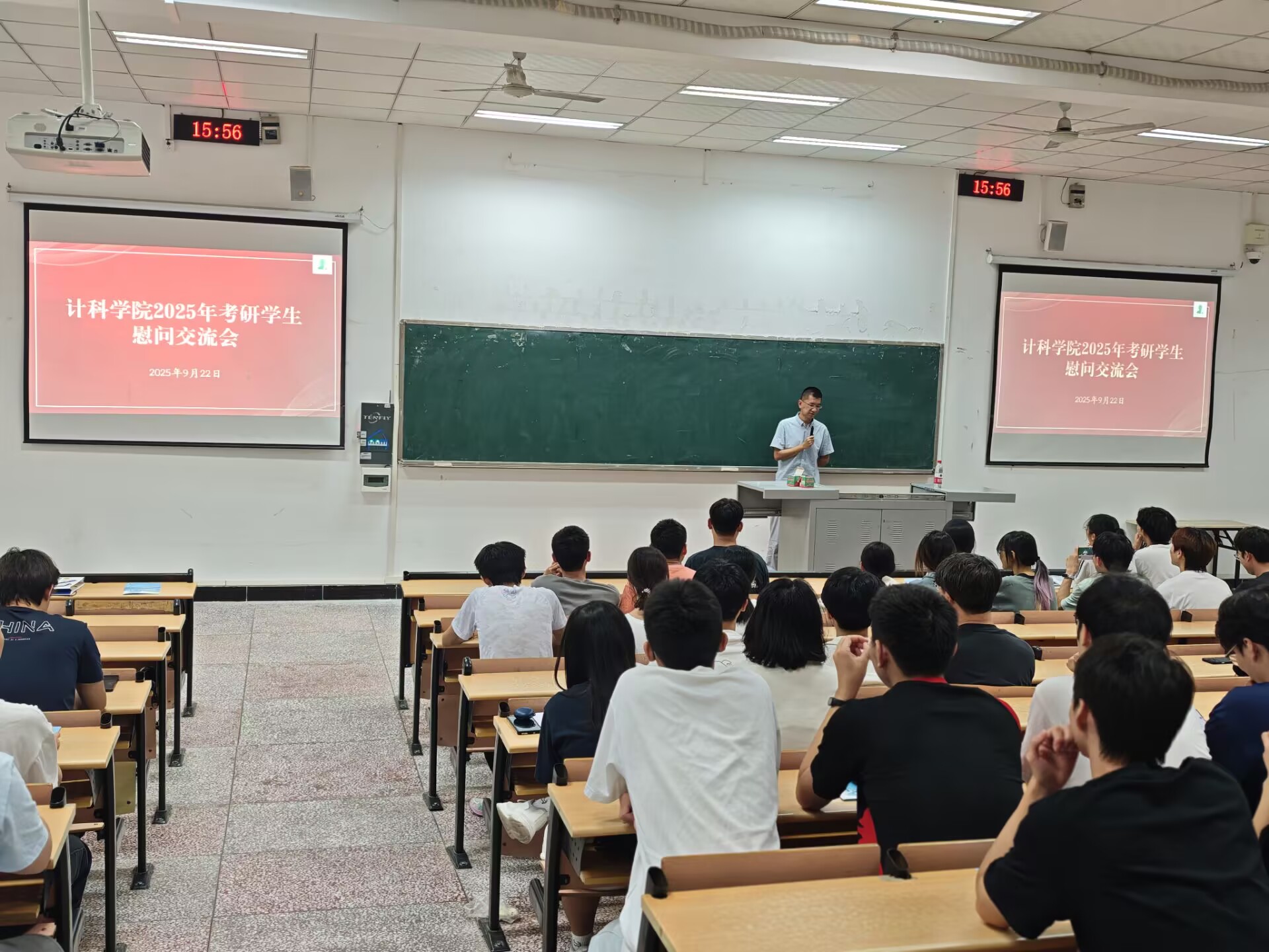 9月22日,计科学院在明辨楼2-103教室开展2026届毕业生考研慰问活动。学院党总支副书记廖红富、物联网工程系主任潘勇及140余名考研学子参加了此次慰问会。